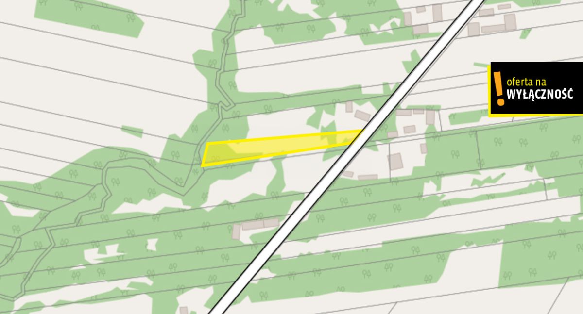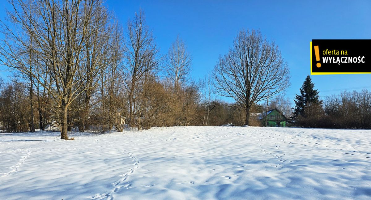 5) działka nieogrodzona, z lekkim spadkiem w kierunku strumyka, tył działki porośnięty drzewami, idealna na siedlisko, agroturystykę.